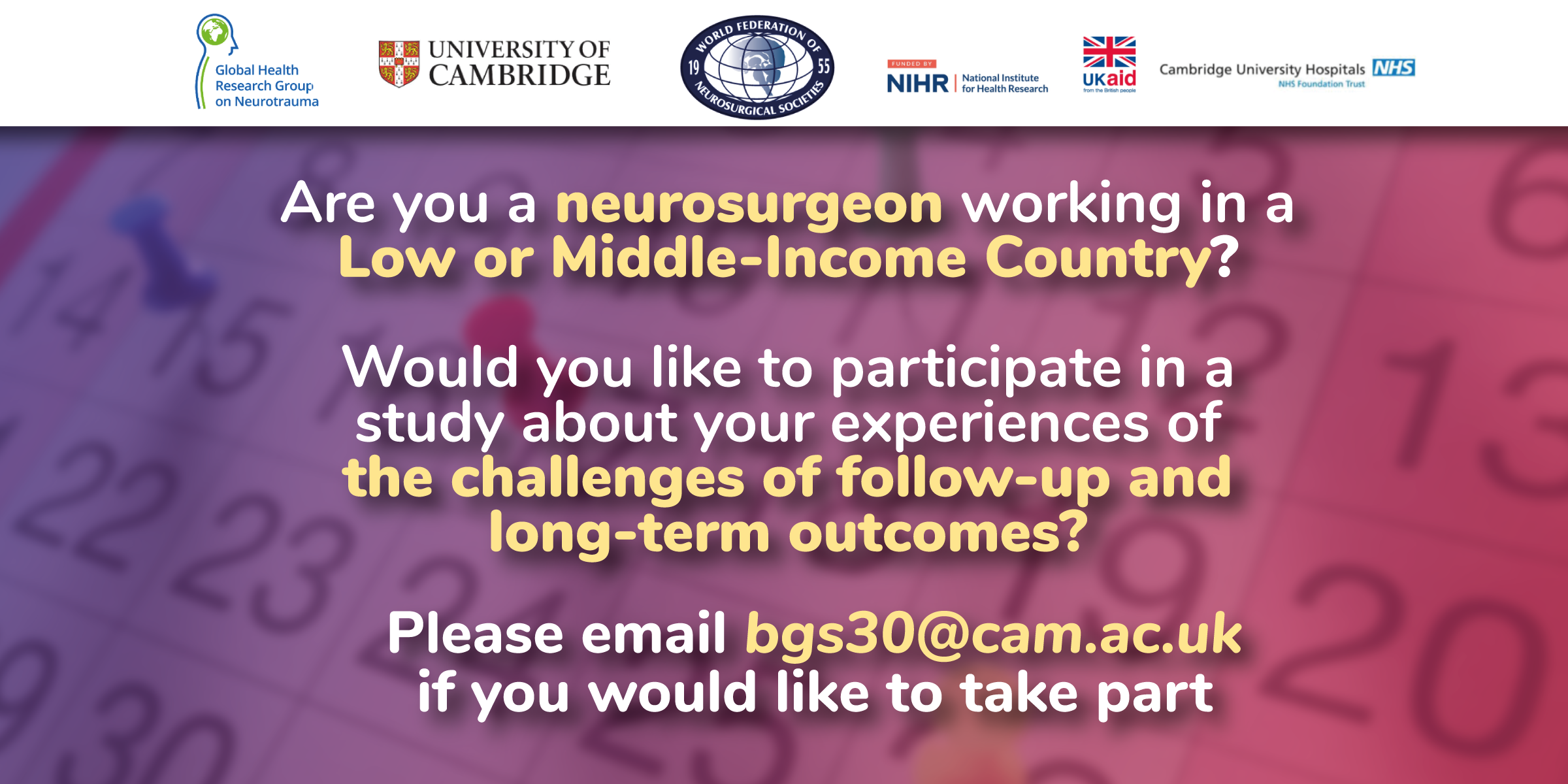 If you are a neurosurgeon working in a low- or middle-income country and would like to participate in the study please email bgs30@cam.ac.uk.